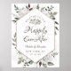 Vintage Cherish White Floral & Rose Gold Painted Roses and Flowers. A Vintage Classic and Elegant Look, and Plenty of Gray, Ivory White, Rose Gold, Dusty Pink, Pine Green, and Gray leaves and foliage. With Hand Painted Floral elements, Vintage Classic Script Fonts, and Elegant Rose Gold Glitter Foil Geometric Hexagon Frame - Wedding Reception Welcome to our Happily Ever After Sign!