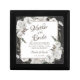 Vintage Cherish White Floral & Rose Gold Painted Roses and Flowers. A Vintage Classic and Elegant Look, and Plenty of Gray, Ivory White, Rose Gold, Dusty Pink, Pine Green, and Gray leaves and foliage. With Hand Painted Floral elements, Vintage Classic Script Fonts, and Elegant Rose Gold Glitter Foil Geometric Square Frame On a Charcoal Dark Gray Color Editable Background - Mother of the Bride Heartfelt Quote Keepsake Personalized Wood Jewelry Gift Box!
