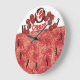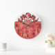Vintage style cherries fruit emblem with C monogram, bold numbers and red damask background on this kitchen clock for cherry lovers.