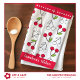 Add a touch of charm to your kitchen with this customizable tea towel that features a vintage cherry pattern on a crisp white background, accented with vibrant red borders, touches of green and black, and customizable text that reads, “Grandma’s Kitchen.” This stylish and practical kitchen towel will make an ideal gift for anyone who loves cooking or baking. Modify the name to create a unique and thoughtful gift for cooks. Perfect for birthdays, Grandparents’ Day, housewarming parties, or any special occasion.