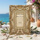 Set the tone for a formal fairytale celebration with this opulent design featuring vintage flourishes and warm neutrals. Perfect for traditional couples.This design features a rich visual composition reminiscent of the Gilded Age. The artwork simulates a rectangular frame composed of intricate scrollwork, carved floral roses, and draped fabric swags, rendered in tones of warm beige and antique gold. At the bottom center, two symmetrical cherub angels rest among pearl beading details. The typography pairs a traditional serif font with elegant calligraphy script.This is a flat printed image with a faux gold foil and embossed texture effect, not actual raised material or metallic foil.