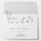 This elegant and vintage-inspired silver floral wedding envelope in a 5x7 format features a return address, simple calligraphy script, and a chic romantic gold rope heart. Perfect for adding a touch of timeless sophistication and romance to your wedding stationery.