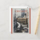 Anyone would love to receive this vintage travel postcard featuring a retro illustration of the L and the city skyline of Chicago, Illinois!