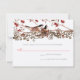 Vintage Red Berry Branch Love Birds Chickadee RSVP Response Card. Forest grove wedding, Love birds wedding, Vintage lovebird wedding, English cottagecore aesthetic, Red Berry wedding, Musical notes singing birds, Muted Red and Brown Earthy Hues Wedding, Rustic country farmhouse barn wedding, Folksy forest orchard grove wedding, Woodsy woodland wedding