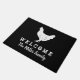 Vintage chicken farm animal custom welcome doormat with family name or address. Custom door mat for families, business, butchery, company, bar, pub, shop, store, office coworker, newlyweds, mr and mrs couple, butcher, farm, chef, cook, meat lover etc. Add your own welcome message, house number, family name, monogram, surname or funny quote. Cool gift idea for new home, relocation or housewarming. Grungy typography template with black background color. Personalizable doormat sign with rustic design. Create your own funny entry mat / rug for front door, entryway or hall. Customizable home decor / decorations for your house or establishment. Trendy home decor gift ideas. Available in small and big large size.