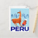 Vintage and whimsical 1950's travel poster depicting a reluctant llama and handler in the Andes mountain range.