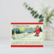 This postcard features a vintage illustration of a child pulling a scroll of resolutions with a New Year's greeting above and a message below.