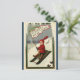 This beautiful postcard features a vintage illustration of a child with a flag sledding on the snow and a New Year's greeting.