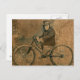 Vintage photo of a chimpanzee, wearing a hat and suite while riding a bicycle. Enhanced, lighter version also available.