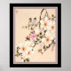 Vintage, Asian, Print Featuring Birds on Peonies Branches. 11x14 and 16x20