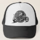 A retro image of a vintage chopper motorcycle is the feature on this hat.