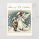 Customizable Vintage Christmas Angel and Child Flat Card.