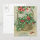 Vintage Christmas Basket with Holly Holiday Postcard