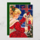 Yes, you can print on the back of your invitation for free! Most designs already have a corresponding design on the back that can be personalized using the Design Tool and going to Layers. This is a great way to communicate more information or further personalize your Vintage Christmas Candle Lamp Red Glitter Girl Invitation. The option is really up to you.
