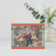 Vintage Christmas card, featuring Santa Claus in his workshop.