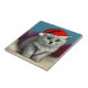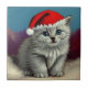 Ceramic Tile featuring a Christmas cat wearing a Santa hat! This blue-eyed, grey kitty poses in a field of snow. An adorable gift for the Christmas season and cat lovers!