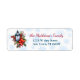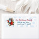 This pretty Holiday return address label has a watercolor image of a vintage era lantern within a red poinsettia Christmas bouquet. Your text is in red and blue at the right side. The image and text are placed on a subtle blue snowflake background. Festive, with a bit of nostalgia.