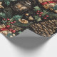 Spread some holiday cheer with this elegant Vintage Christmas Lanterns wrapping paper. A black background with a variation of pinecones, poinsettias, berries, gifts, stars, and vintage lanterns.