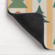 This mouse pad has mid-century modern design of Christmas trees and ornaments strung on a garland with a gold and silver background.