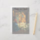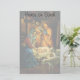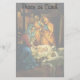 Vintage illustration religious Christmas holiday design featuring a classic nativity. A Christian religion family scene with Mary, Joseph and the infant Jesus Christ in the manger with lamb and sheep. Bethlehem.