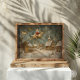 This enchanting vintage-style painting captures the timeless magic of Christmas Eve. Santa Claus, in his classic red suit, is seen flying across the night sky with his reindeer, delivering joy to the snow-covered village below. The soft glow of lights from the cozy homes adds warmth to the cold winter night, while delicate snowflakes fall gently, creating a serene and festive atmosphere. Perfect for bringing the nostalgic charm of a traditional Christmas into your home.