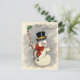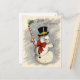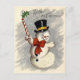 vintagechristmassnowmanephemeraantiquesnowman holding candycanered ribbonblack hatzazzlepostcard