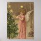 Vintage Christmas Poster Angel and Christmas Tree