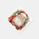 Paper napkins with a cute vintage style watercolor image. Santa Claus in his red suit with jolly cheeks and a smiling face. Surrounded by pine and holly.