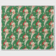 This vintage Christmas wrapping paper features a festive green background adorned with Santa Claus faces, red and white ornaments, and sparkling snowflakes. Santa's jolly face with a bushy white beard and a red hat adds a classic touch to this timeless design.