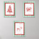 Set of three Christian Christmas posters featuring scripture verses: Matthew 1:23 “Emmanuel, God With Us,” Isaiah 9:6 “Prince of Peace,” and Luke 2:11 “A Saviour Is Born.” Illustrated with vintage red line art and framed with green holiday stripes. Perfect for church displays, holiday decor, or faith-filled home celebrations.