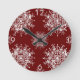 Vintage Christmas Snowflakes Red Blizzard Pattern Round Clock