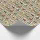 Create a sentimental christmas feel with this vintage postal stamp wrapping paper feature hues of soft forest green.