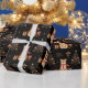 Vintage Christmas Tiger with Tree Black Wrapping Paper