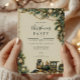 Step into a nostalgic holiday celebration with this vintage Christmas train design. Adorned with pine greenery, golden ornaments, and a charming steam locomotive, it captures the magic of timeless Christmas traditions. Perfect for hosting a festive gathering full of warmth and wonder.