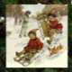 Vintage Christmas, Victorian Children Sledding Dog Poster