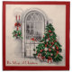 Holiday Cloth Napkins with a vintage Christmas window scene of the Christmas tree and lights shining at night by a beautiful window.