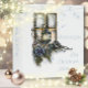 Personalized Christmas holiday photo binder depicting a vintage winter window and lantern and transparent mason jar string lights.