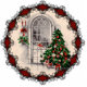Originally a black and white drawing from the early 1900s, this vintage Christmas window scene with Christmas tree and lights makes a great holiday ornament for the tree.