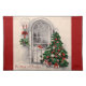 Holiday Placemat with a vintage Christmas window scene of the Christmas tree and lights shining at night by a beautiful window.