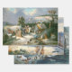 3 x original vintage festive Winter theme fine art sheets of Christmas wrapping paper - VALLEY FORGE, ROME, 19th CENTURY AMERICA....