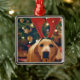 Vintage Christmas Yellow Lab Dog Metal Ornament
