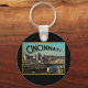 This striking modern vintage image of Cincinnati, Ohio shows a vast cityscape of skyscrapers and buildings with the Ohio river wafting through.