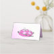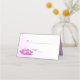Custom folded table cards with script letters and vintage art of Cinderella's glass slipper on a pillow in light and dark princess pink.