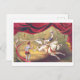 This postcard features a vintage lithograph advertisement for a circus, highlighting clowns, acrobats, and horses/equestrian acts.
