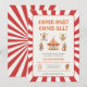 Step right up to the sweetest celebration! This circus-themed baby shower invitation features a retro red design with charming circus illustrations, perfect for welcoming your little star. The classic phrase "Come One, Come All" sets the stage for a fun-filled day under the big top.