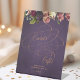 Luxury elegant dark purple plum classic faux gold copper metallic calligraphy script bridal shower welcome cards & gifts tabletop pedestal sign featuring a garland of vintage pink, plum indigo and ivory cream flowers. +++++++++++++ Suitable for vintage romantic, moody elegant formal black tie summer night, autumn fall or winter bridal parties.