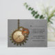 This unique Vintage Clock Wedding Response Card in light gray features antique steampunk clocks and gears hanging by a metal bead chain. The background has a textured paper and mesh overlay which adds a distressed and grungy feel to the design. This quirky and offbeat wedding RSVP card would be perfect for a steampunk inspired wedding. Easy to customize, simply add your wedding details in the spaces provided. Click on the "Customize It" button to find additional personalization options.