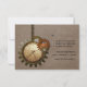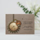 This unique Vintage Clock Wedding Response Card in mocha brown features antique steampunk clocks and gears hanging by a metal bead chain. The background has a textured paper and mesh overlay which adds a distressed and grungy feel to the design. This quirky and offbeat wedding RSVP card would be perfect for a steampunk inspired wedding. Easy to customize, simply add your wedding details in the spaces provided. Click on the "Customize It" button to find additional personalization options.