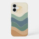 Retro illustration depicting gentle coastal waves in a softened oceanic palette inspired by the 70s.