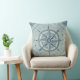 An elegant seamless pattern throw pillow featuring intricately compass roses arranged in a balanced, repeating layout. Rendered in a refined vintage cartography style, the design showcases classic directional markers (N, E, S, W) with delicate linework and subtle texture. The cool blue and cream color palette evokes maritime exploration, navigation, and timeless nautical charm. This pattern appeals to travelers, sailors, map lovers, and fans of classic navigation aesthetics.